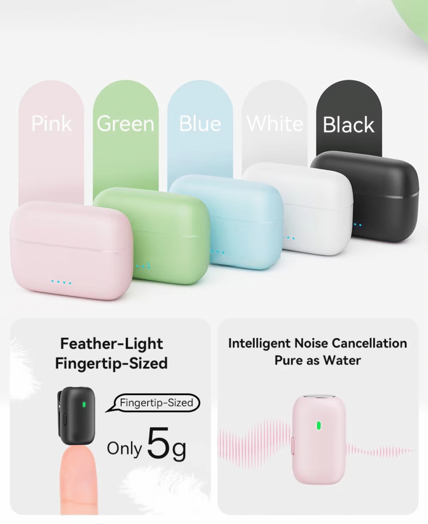 M19, the smallest microphones to date, are fingertip-sized and weigh only 5g, offering a completely weightless wearing experience. Highly portable with an elegant design and multiple color options, they quickly won the favor of users upon release.