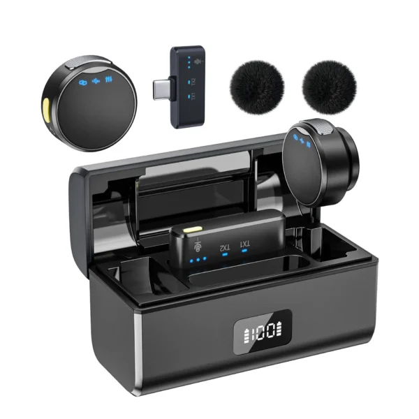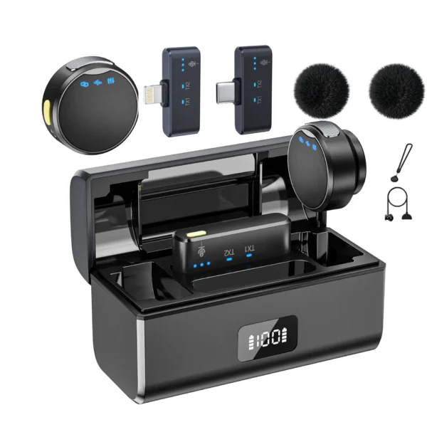 The compact microphone is easy to carry and features a single-mic working time of over 5 hours, complemented by a 400mAh charging case to ensure you never worry about battery life. This professional lavalier microphone wireless is perfect for travel, live streaming, recording, and content creation on the go.