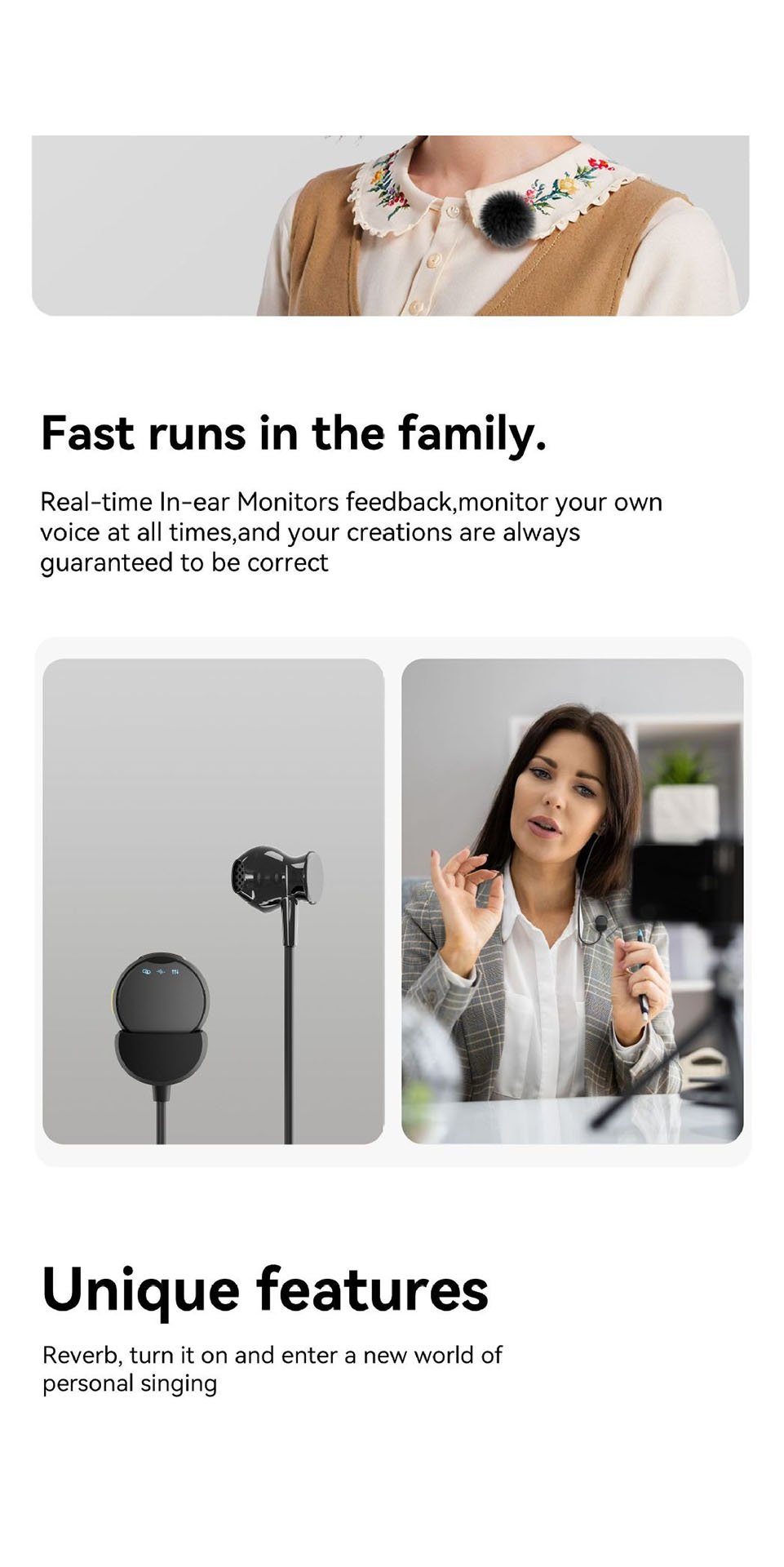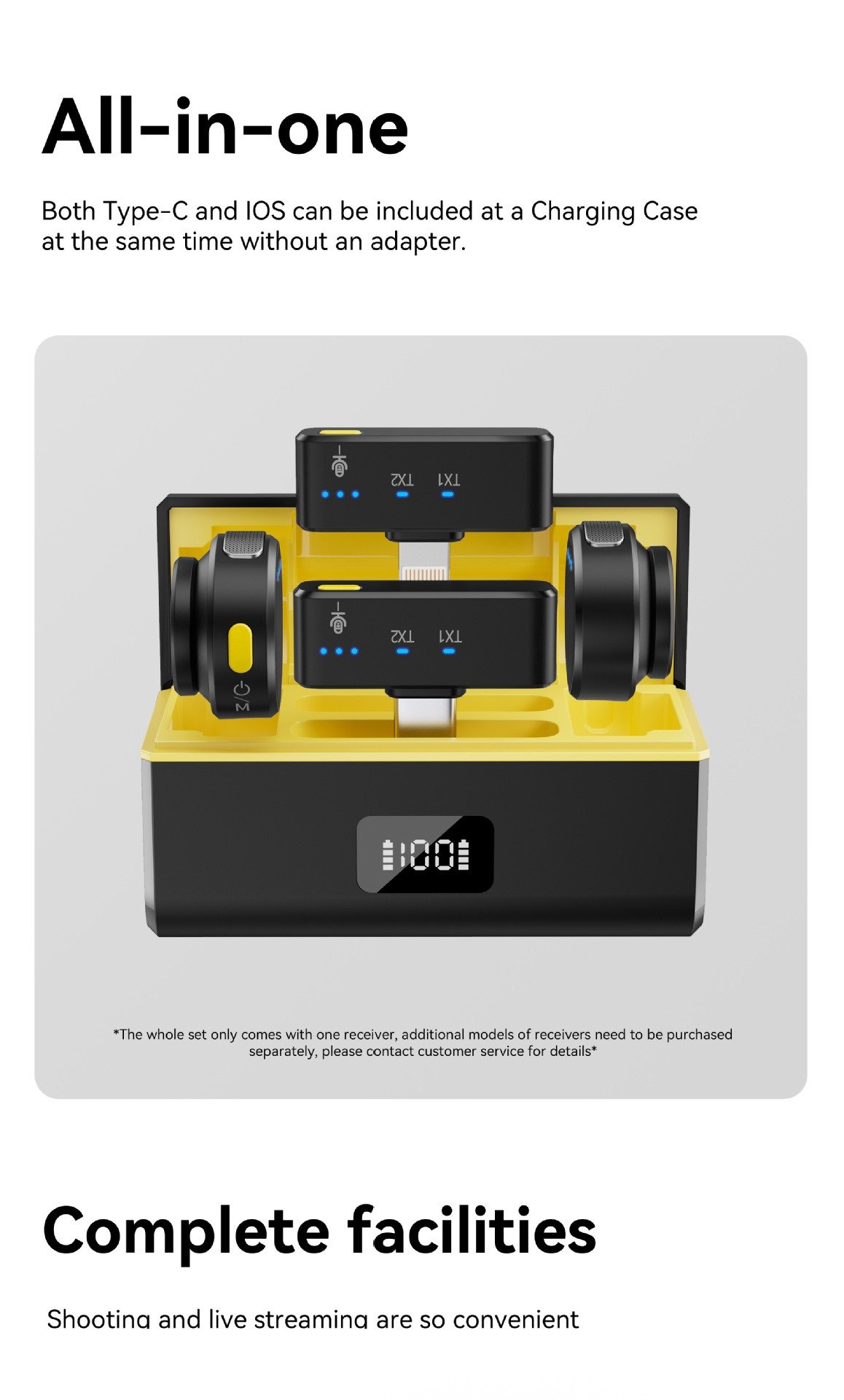 Equipped with a two-in-one receiver, this microphone easily adapts to 99.9% of mobile phones. The button-sized design is ultra-lightweight, comfortable to wear, and finished with a premium metal matte texture for a high-end feel. As a private mold product, it is crafted with superior workmanship, and the receiver allows adjustment across three different volume levels.