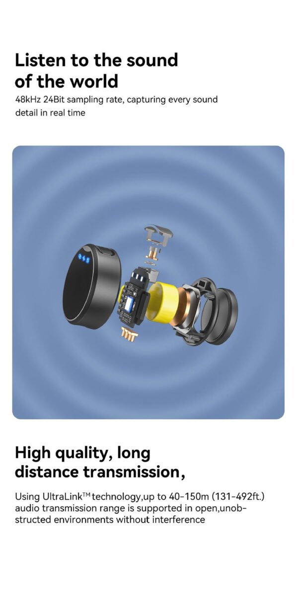 4:Button-sized, ultra-mini design: Comfortable to wear with no burden; metal matte finish provides a premium, high-end feel.