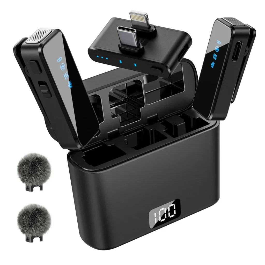 6: Tek bir mikrofonun 5 saatten fazla kesintisiz çalışma süresi ve beraberindeki 400 mAh şarj kutusu, seyahatler ve uzun süreli dış çekimler için güvenilir bir enerji kaynağı sağlar.